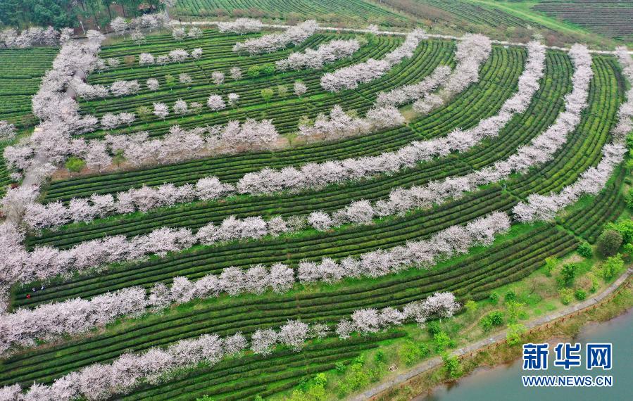 這是3月20日拍攝的南昌縣鳳凰溝景區(qū)盛開的櫻花(無人機照片)。
