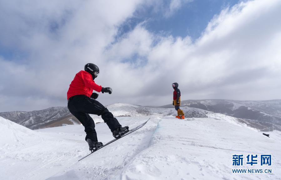 3月20日,冬殘奧會(huì)國家集訓(xùn)隊(duì)單板滑雪運(yùn)動(dòng)員巖溫的(左)在冬殘奧會(huì)訓(xùn)練基地訓(xùn)練。新華社記者 才揚(yáng) 攝
