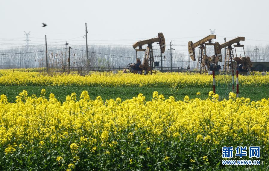 3月23日,在江蘇油田陳堡采油班站,采油機(jī)組在工作中。