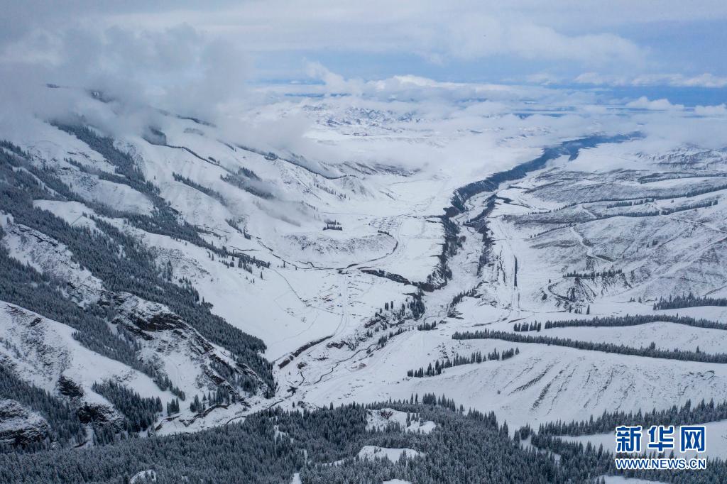 當日,一場春雪過后,新疆沙灣市南部的天山山脈一片銀裝素裹。蒼山覆雪、云霧繚繞,如同一幅幅水墨畫般動人。