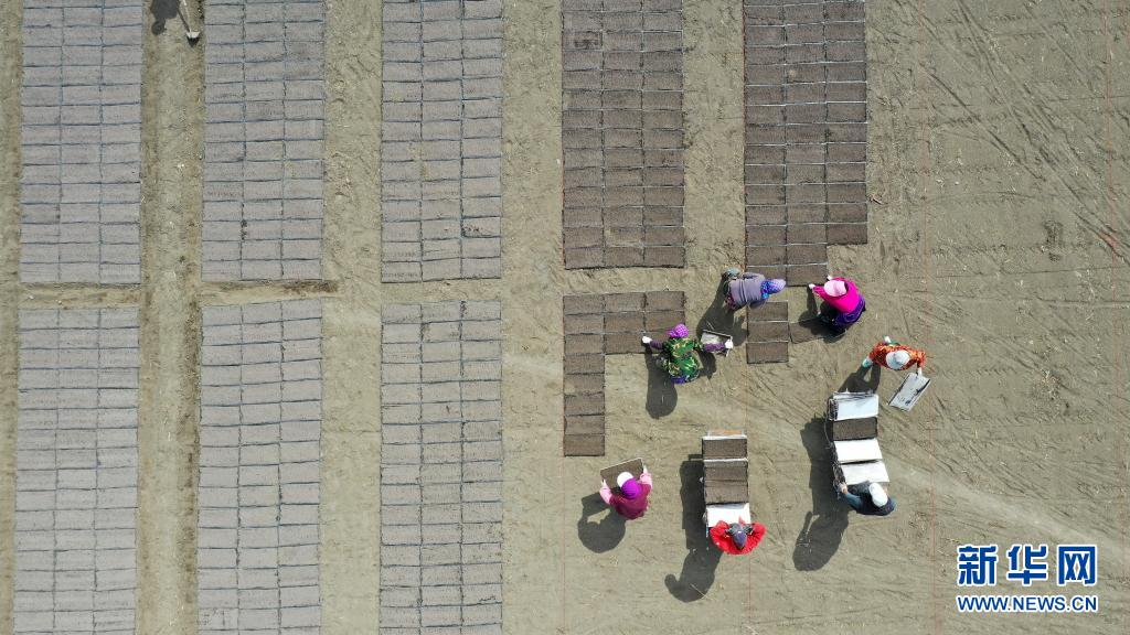 4月3日,唐山蘆臺(tái)經(jīng)濟(jì)開(kāi)發(fā)區(qū)四分場(chǎng)的農(nóng)民在稻田地里碼放育苗盤(pán)(無(wú)人機(jī)照片)。春耕時(shí)節(jié),河北省唐山市蘆臺(tái)經(jīng)濟(jì)開(kāi)發(fā)區(qū)農(nóng)民搶抓農(nóng)時(shí),開(kāi)展稻田整地、水稻育秧等工作。新華社發(fā)(董軍 攝)