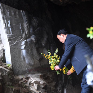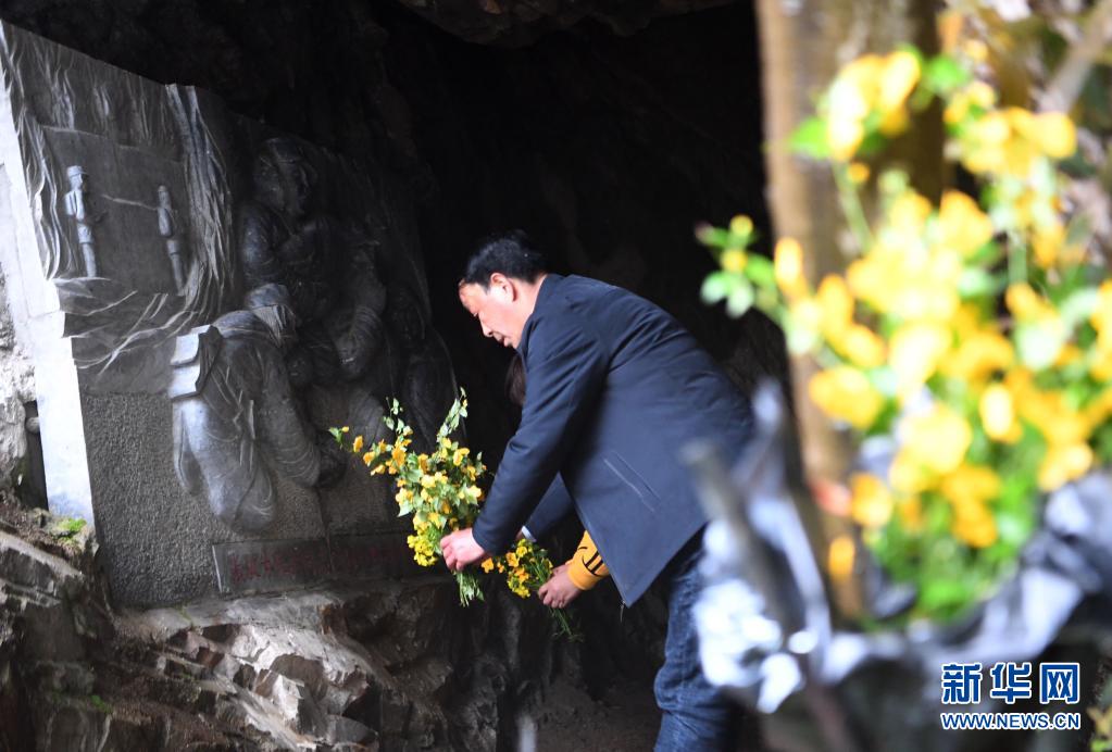 4月2日,曾祥有在金剛臺(tái)紅軍洞里獻(xiàn)花祭奠。