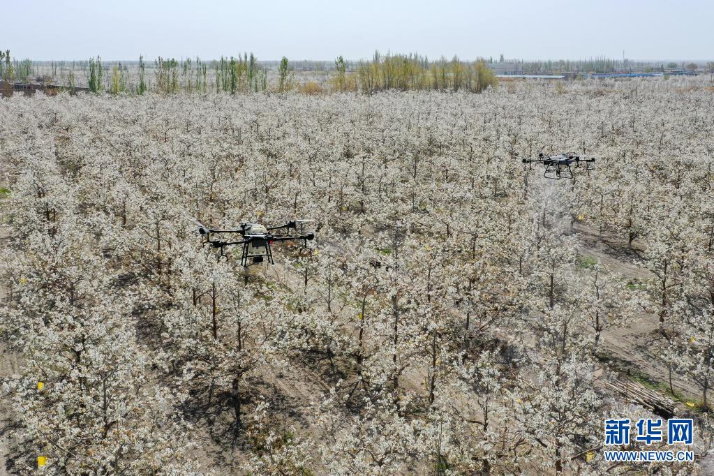 新華全媒+丨新疆:梨農(nóng)授粉用上無人機