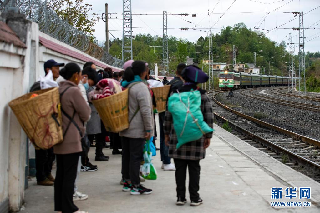 在成昆鐵路上普雄站,人們準備乘坐5633次列車出行(4月11日攝)。新華社記者 沈伯韓 攝