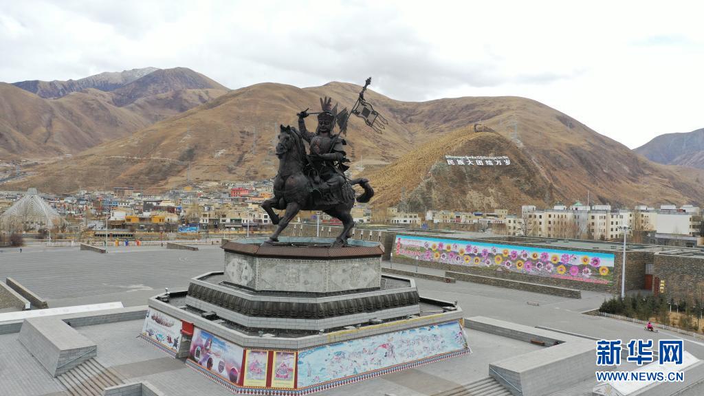這是青海省玉樹藏族自治州玉樹市格薩爾王廣場(chǎng)(3月10日攝,無人機(jī)照片)。