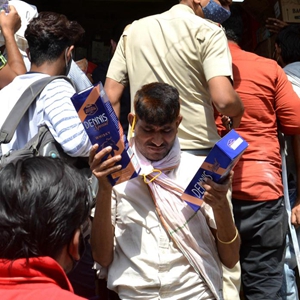 印度:封鎖前 買酒忙