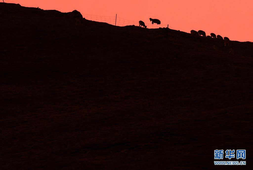 4月22日黃昏時分,在位于青海省海北藏族自治州的祁連山國家公園油葫蘆保護(hù)分區(qū),一頭巖羊高高躍起跨越障礙。