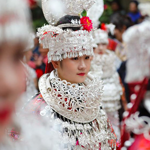 今年姊妹節(jié)前夕,母親張?jiān)雅畠菏⒀b的銀飾拿到銀飾店里進(jìn)行清洗,希望女兒能在盛裝巡演上展示最美的一面。4月25日姊妹節(jié)當(dāng)天,張佳麗早早起床,在母親和同學(xué)的幫助下,開(kāi)始化妝、穿衣、佩戴銀飾,一直忙到9點(diǎn)才準(zhǔn)備完畢。身著盛裝站在巡演隊(duì)伍中,張佳麗說(shuō):“這是我們苗族同胞最大的節(jié)日,無(wú)論身處何地,我都會(huì)如約回家參加活動(dòng)!”