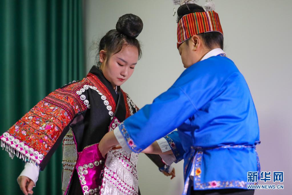 今年姊妹節(jié)前夕,母親張?jiān)雅畠菏⒀b的銀飾拿到銀飾店里進(jìn)行清洗,希望女兒能在盛裝巡演上展示最美的一面。4月25日姊妹節(jié)當(dāng)天,張佳麗早早起床,在母親和同學(xué)的幫助下,開始化妝、穿衣、佩戴銀飾,一直忙到9點(diǎn)才準(zhǔn)備完畢。身著盛裝站在巡演隊(duì)伍中,張佳麗說:“這是我們苗族同胞最大的節(jié)日,無論身處何地,我都會如約回家參加活動!”