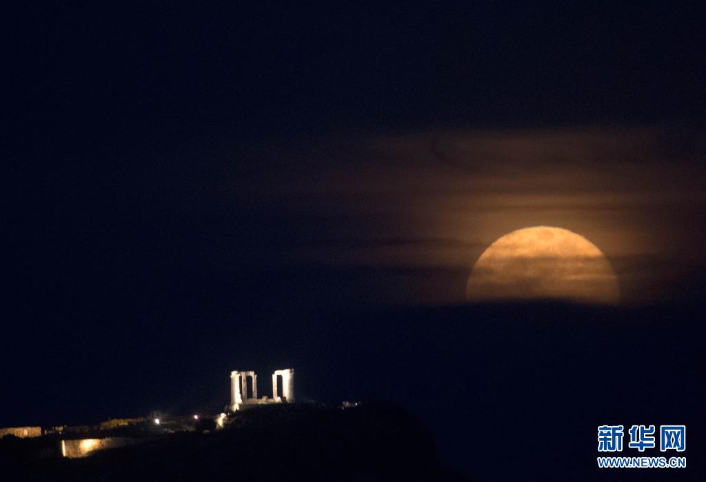 希臘海神廟:“超級月亮”現(xiàn)身夜空