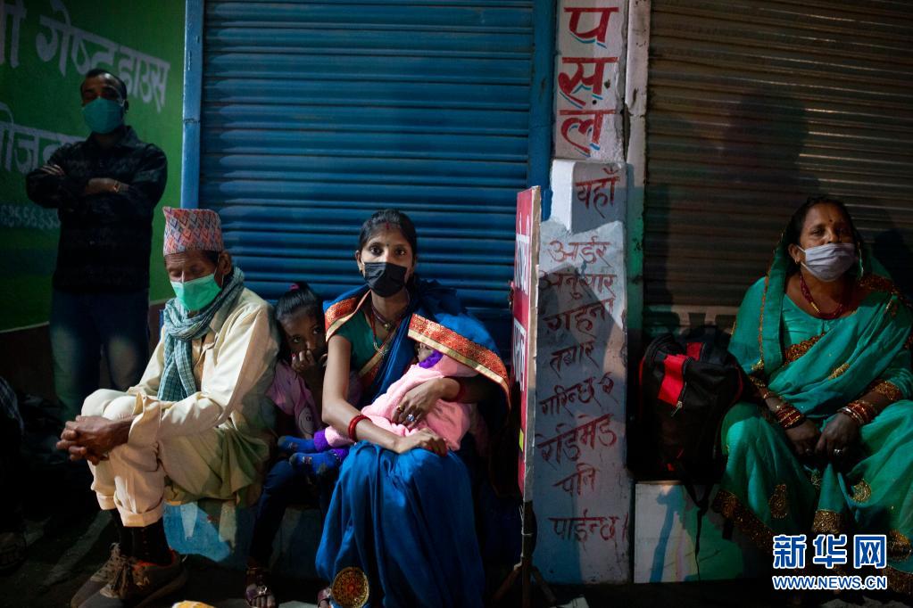 4月28日晚,人們在尼泊爾首都加德滿都的路邊等車,準(zhǔn)備在封禁措施實(shí)施前離開加德滿都返回家鄉(xiāng)。
