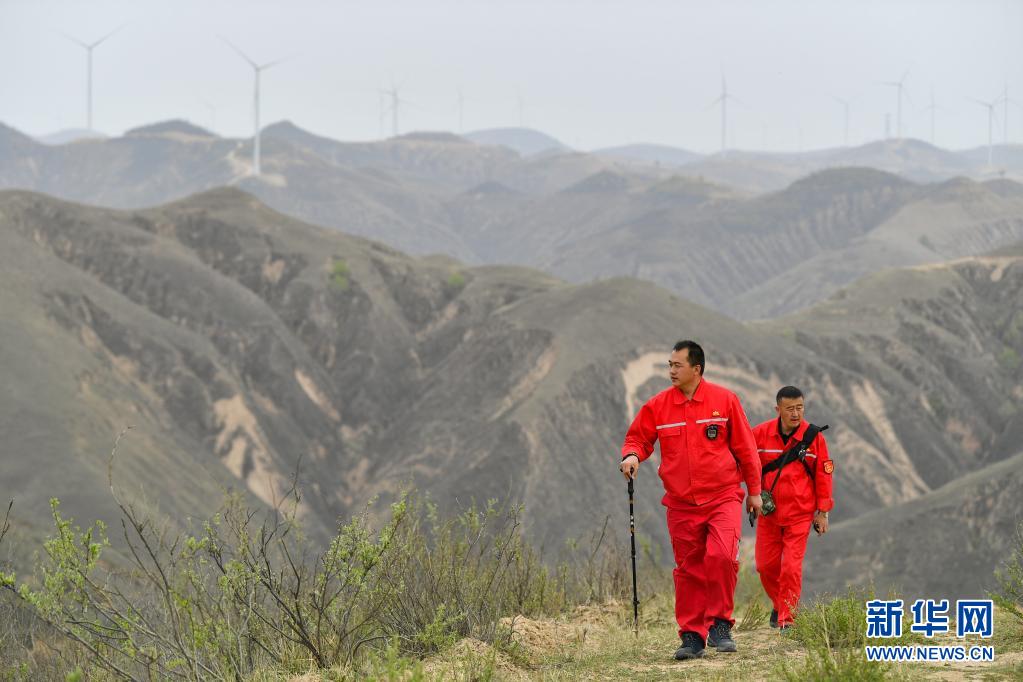 4月27日,巡線隊員張偉偉(左)、張浩軍在巡線途中。新華社記者 張博文 攝