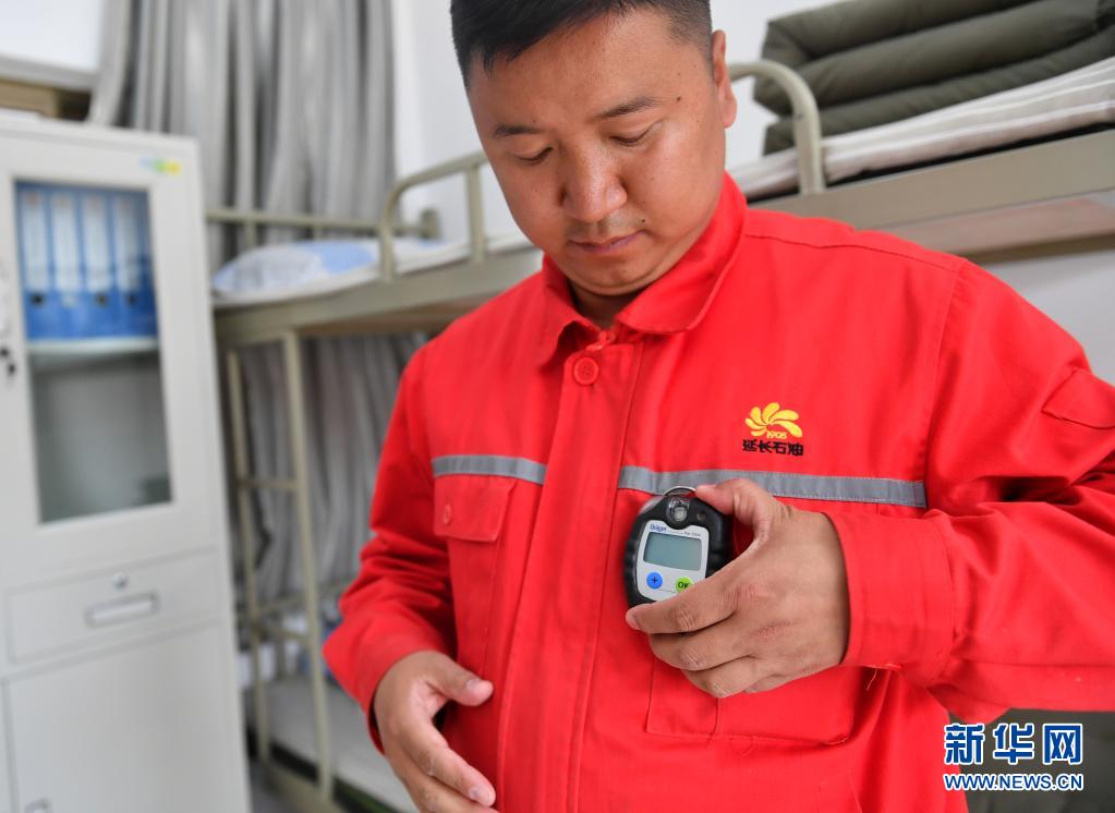 4月28日,巡線隊員侯勵峰出發(fā)前佩戴氣體檢測報警儀。新華社記者 張博文 攝