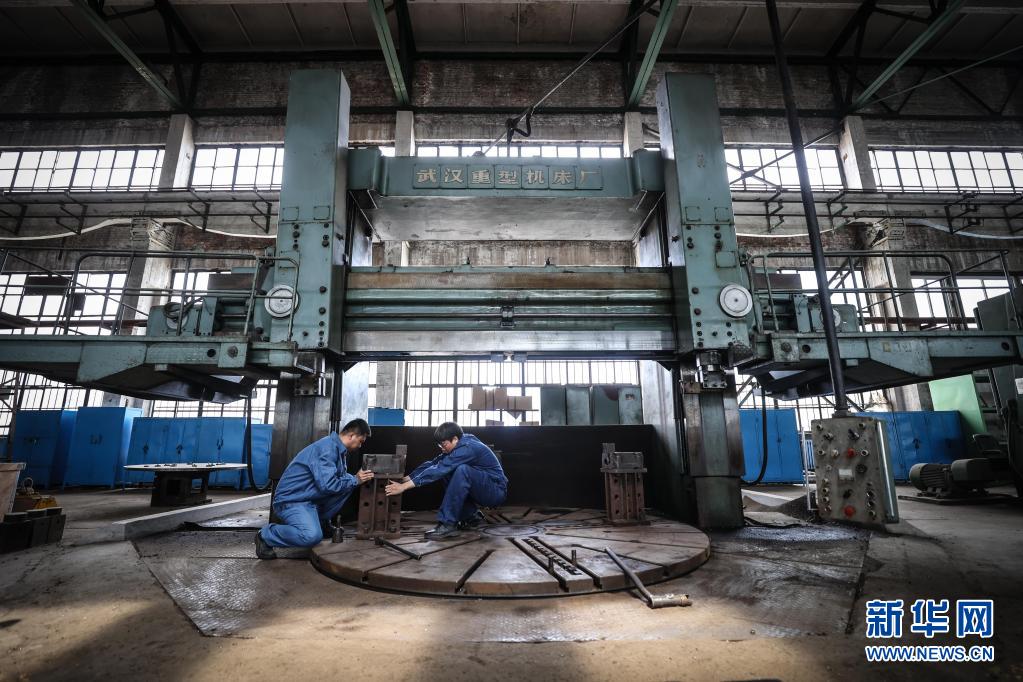 4月30日,王尚典(右)與同事對機(jī)床進(jìn)行調(diào)整準(zhǔn)備加工配件。