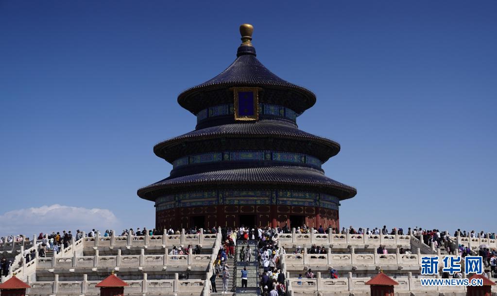 “五一”期間,許多游客來到北京天壇公園參觀游覽,樂享假期生活。