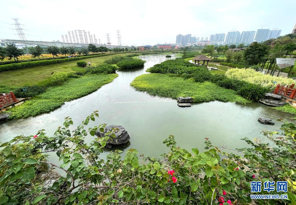 立夏時(shí)節(jié),廣西南寧市那考河濕地公園內(nèi)草木吐翠、鮮花斗艷,一派繁茂景象。