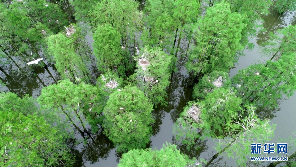 位于安徽省滁州市來安縣雷官鎮(zhèn)的池杉湖國家濕地公園經(jīng)過多年的生態(tài)修復,形成分布數(shù)萬株池杉樹、具有獨特觀賞價值的“水上森林”濕地景觀,成為眾多鳥類生活、棲息的“天堂”。
