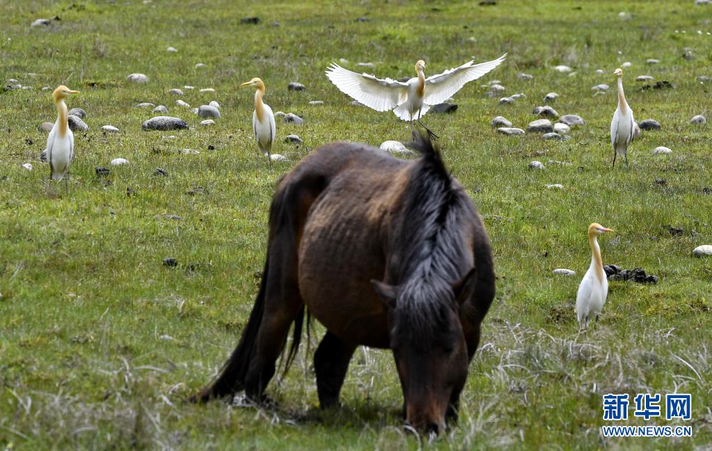 牛背鷺在易貢國家地質(zhì)公園棲息(5月22日攝)。