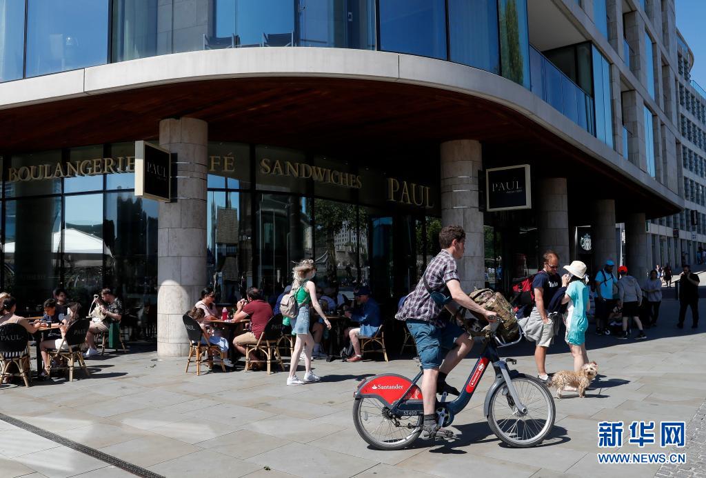 6月1日,人們?cè)谟?guó)倫敦一家咖啡廳的戶外餐飲區(qū)就餐。