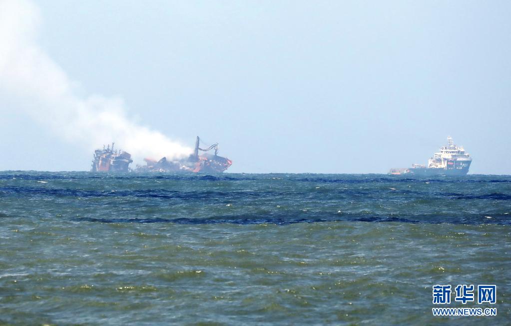 6月2日,斯里蘭卡總統(tǒng)戈塔巴雅下令將起火貨船“X-PRESS PEARL”號拖向遠離科倫坡港的深海區(qū),以防引發(fā)更大的環(huán)境災難。“X-PRESS PEARL”號貨船5月20日抵達科倫坡港西北約9.5海里錨地時發(fā)出火警求救信號。斯里蘭卡海洋環(huán)境保護局官員5月28日表示,在科倫坡港附近起火燃燒的“X-PRESS PEARL”號貨船預計將會引發(fā)嚴重環(huán)境災難。新華社發(fā)(阿吉特·佩雷拉攝)