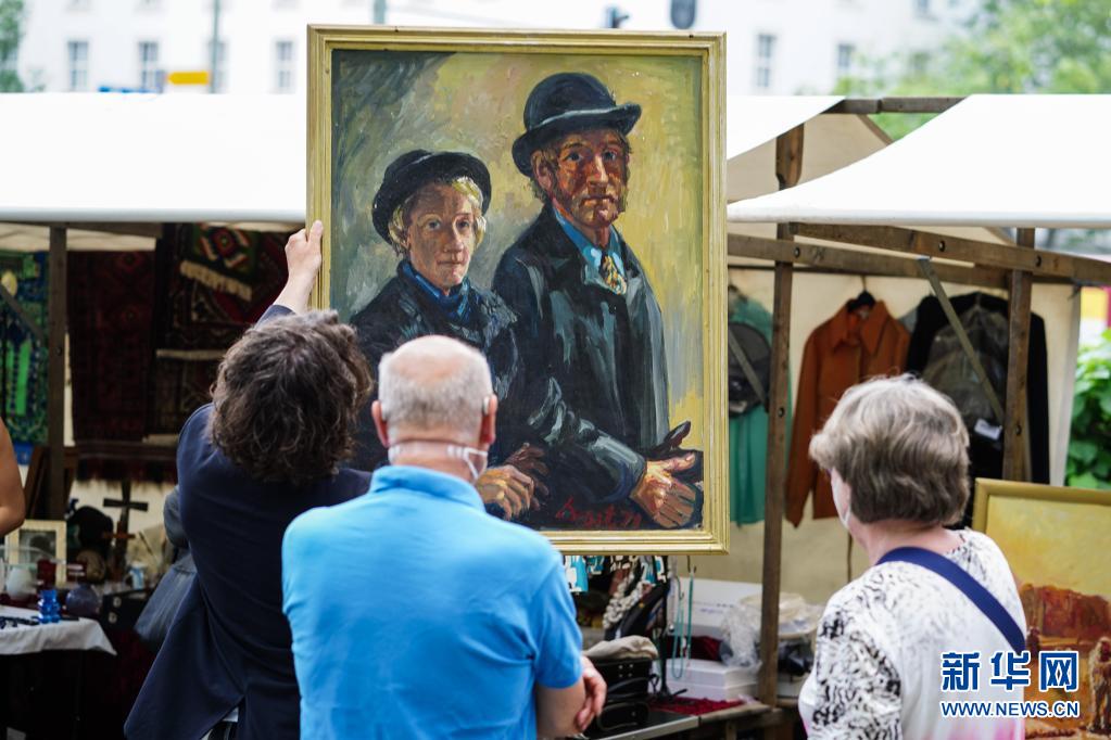 6月6日,人們在德國首都柏林的一處“跳蚤市場”內(nèi)選購畫作。