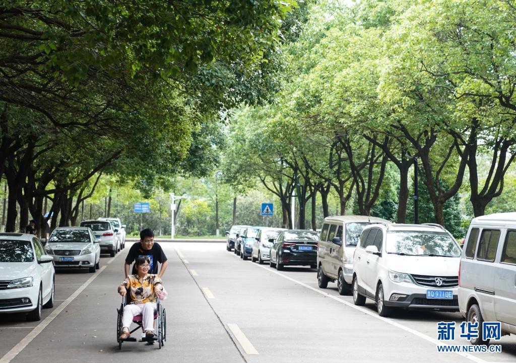 6月1日,趙建軍利用課余時間帶著母親在校園內(nèi)散心。新華社記者胡晨歡攝