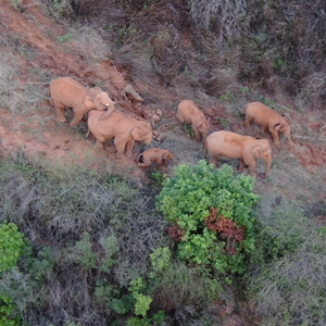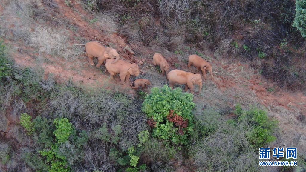 6月15日在玉溪市易門縣十街鄉(xiāng)拍攝的象群(無人機照片)。新華社發(fā)(云南省森林消防總隊供圖)
