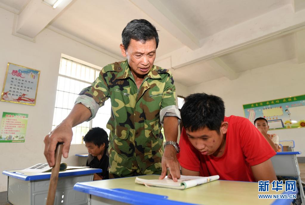 在廣西上思縣那琴鄉(xiāng)中心小學逢通村教學點,梁志雄老師在輔導學生(6月16日攝)。新華社記者 陸波岸 攝