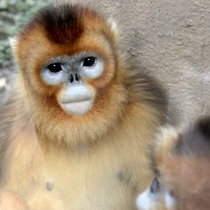 北京動物園內(nèi)的滇金絲猴在室內(nèi)乘涼(6月28日攝)。