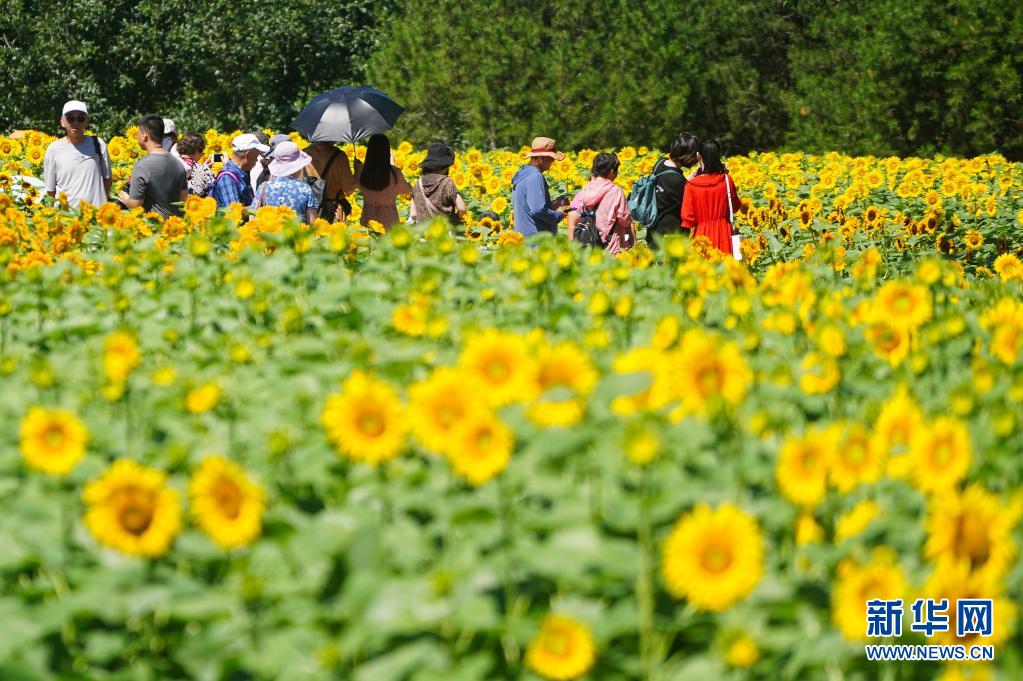 日前,北京奧林匹克森林公園北園的向日葵進(jìn)入盛花期,眾多市民和游客前來觀賞。