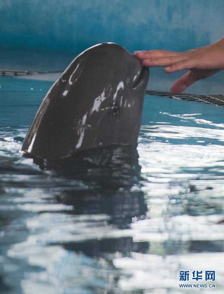 7月5日,中科院水生所白鱀豚館飼養(yǎng)員對(duì)長(zhǎng)江江豚進(jìn)行訓(xùn)練。新華社記者肖藝九攝