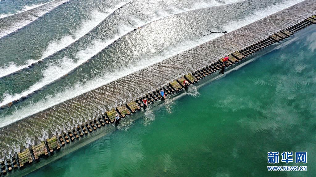 當(dāng)日,浙江省臺州市仙居縣永安溪流域水面如鏡,藍(lán)天、白云倒影水中,構(gòu)成一幅美麗的畫卷。新華社發(fā)(王華斌 攝)
