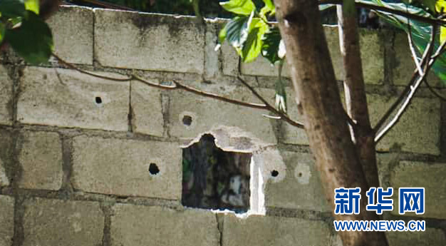 7月7日,在海地太子港,海地總統(tǒng)莫伊茲住所外墻上的彈孔清晰可見(jiàn)。