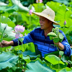盛夏時節(jié),湖南省湘潭市雨湖區(qū)姜畬鎮(zhèn)聯(lián)映村的蓮蓬逐漸成熟,當?shù)厣忁r(nóng)忙著采摘蓮蓬、荷花。近年來,當?shù)卮罅Πl(fā)展“蓮子經(jīng)濟”,特色產(chǎn)業(yè)帶動村民增收致富。