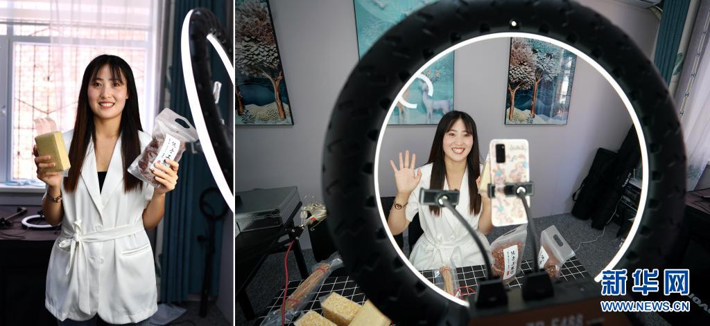 拼版照片:左圖為何雪艷在山西省平順縣龍鎮(zhèn)村電商服務(wù)中心直播間里;右圖為何雪艷通過網(wǎng)絡(luò)直播介紹農(nóng)產(chǎn)品(7月8日攝)。今年25歲的何雪艷是龍鎮(zhèn)村電商服務(wù)中心的網(wǎng)絡(luò)主播,從一個“電商小白”變身網(wǎng)絡(luò)主播不到一年時間,何雪艷已成為龍鎮(zhèn)村帶貨能力頗強(qiáng)的“網(wǎng)紅”。從最初直播時結(jié)結(jié)巴巴,到如今精準(zhǔn)掌握網(wǎng)絡(luò)語言,何雪艷和村里其他主播變得越來越熟練。