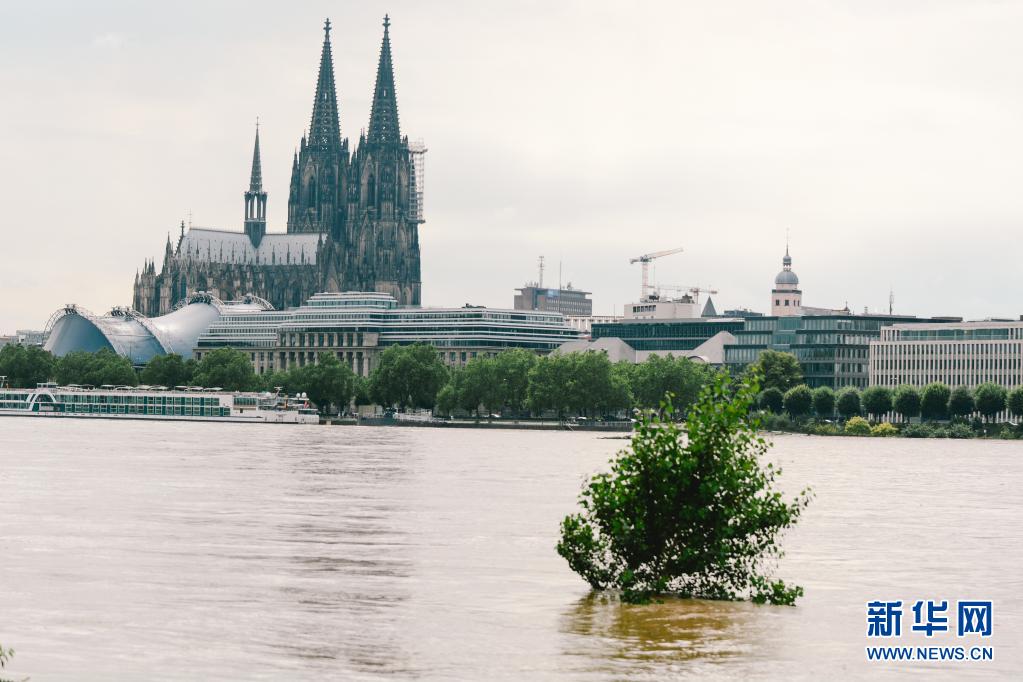 這是7月15日在德國(guó)西部城市科隆拍攝的水位上漲的萊茵河。