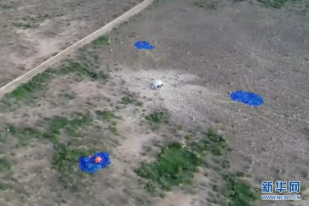 這張美國藍(lán)色起源公司7月20日發(fā)布的視頻截圖顯示“新謝潑德”飛行器在美國得克薩斯州西部著陸。