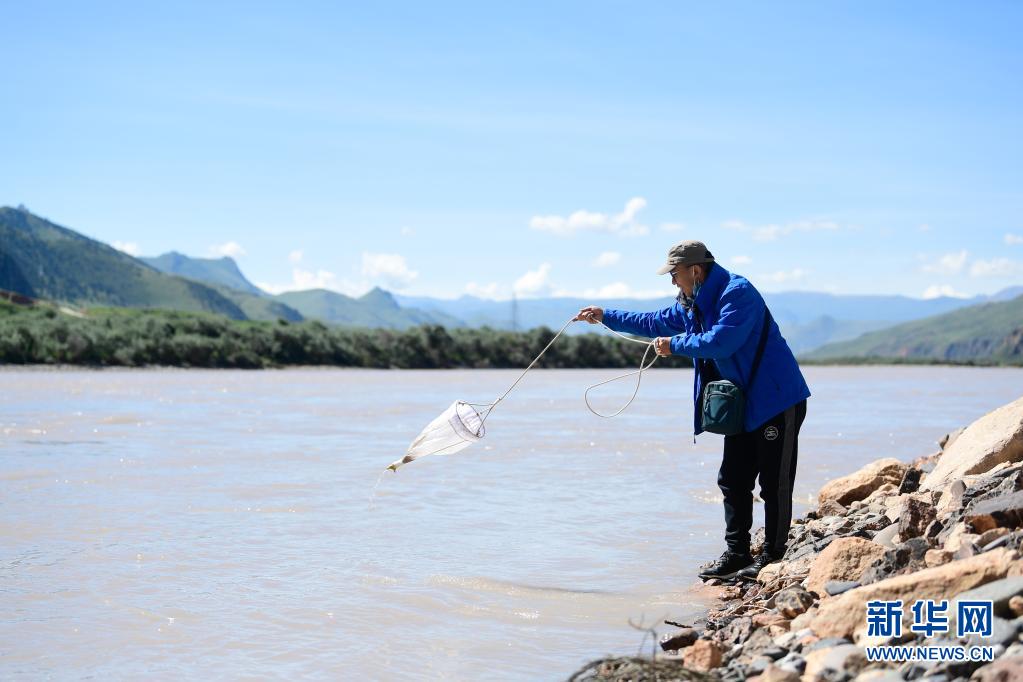 2021年長(zhǎng)江源綜合科考的科考隊(duì)員殷大聰在采集浮游生物(7月22日攝)。