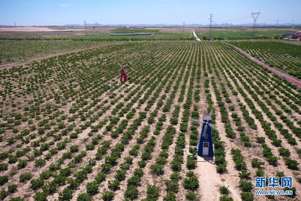 這是寧夏同心縣圣峰休閑生態(tài)觀光園內(nèi)的玫瑰觀光區(qū)(6月22日攝,無(wú)人機(jī)照片)。新華社記者 楊植森 攝