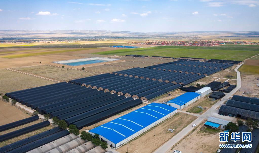 寧夏吳忠市同心縣下馬關(guān)鎮(zhèn)南安村閩寧協(xié)作菌菇種植基地(6月23日攝,無人機(jī)照片)。新華社記者 楊植森 攝