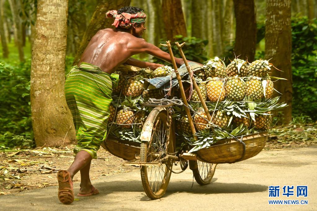7月25日,農(nóng)民在孟加拉國(guó)坦蓋爾運(yùn)輸收獲的菠蘿。