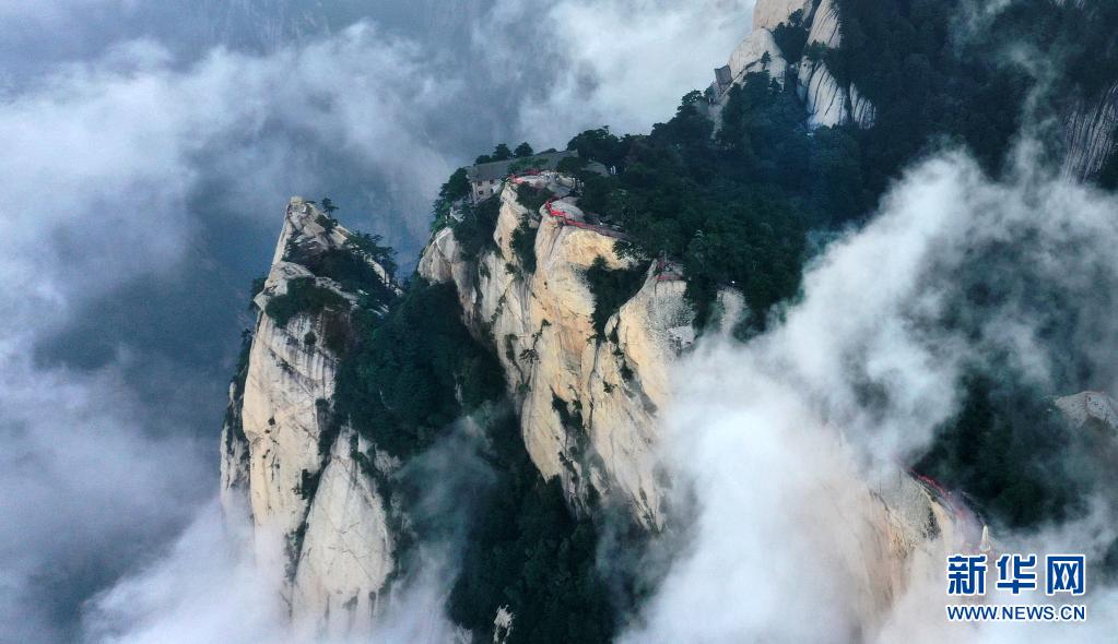 初秋時(shí)節(jié),陜西省渭南市華山景區(qū)云霧飄蕩,如夢(mèng)似幻宛如仙境。