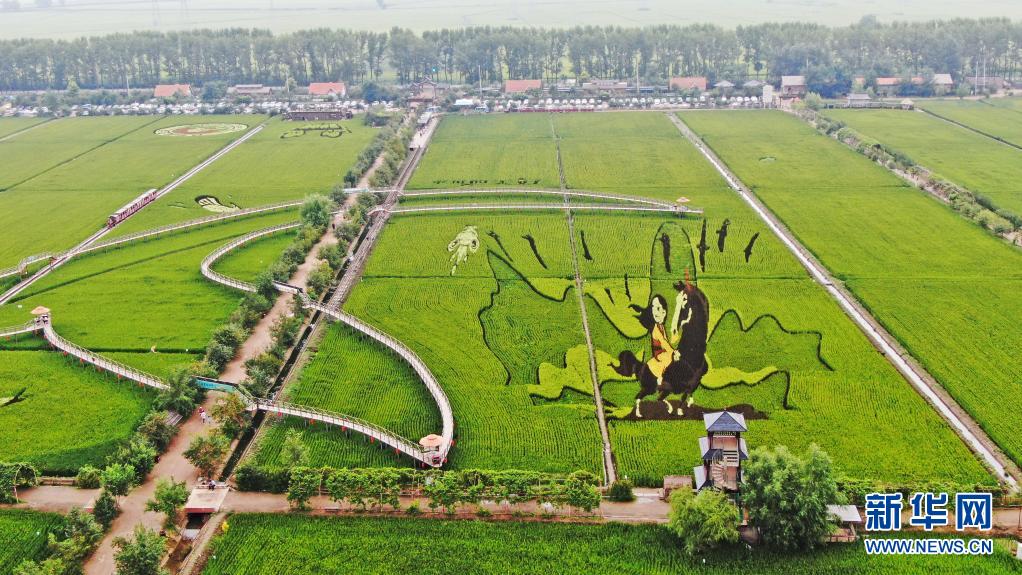 這是8月16日拍攝的稻田畫(huà)《花木蘭》(無(wú)人機(jī)照片)。