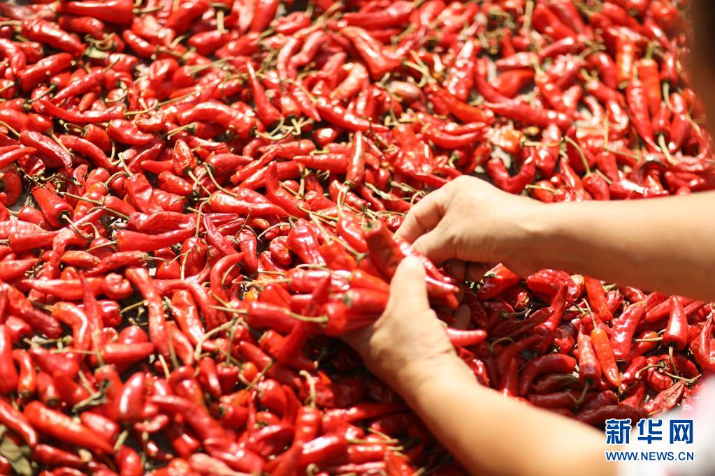 8月18日,赤水市復(fù)興鎮(zhèn)太和村村民在晾曬辣椒。