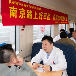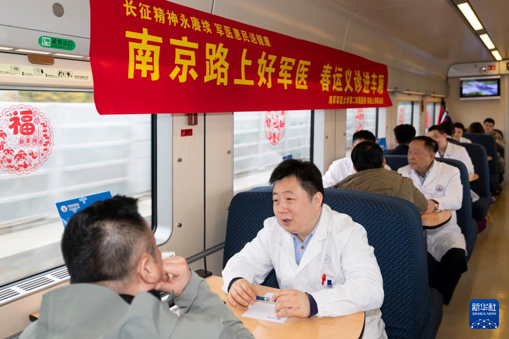 3月3日,中国铁路上海局集团有限公司上海客运段联合海军军医大学第二附属医院(上海长征医院),在上海始发的D956次列车上开展春运义诊进车厢活动,为旅客提供健康咨询等服务。