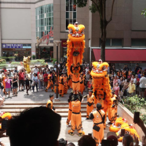 3月3日,在新加坡一商场外进行的元宵节庆祝活动上,演员表演舞狮。
