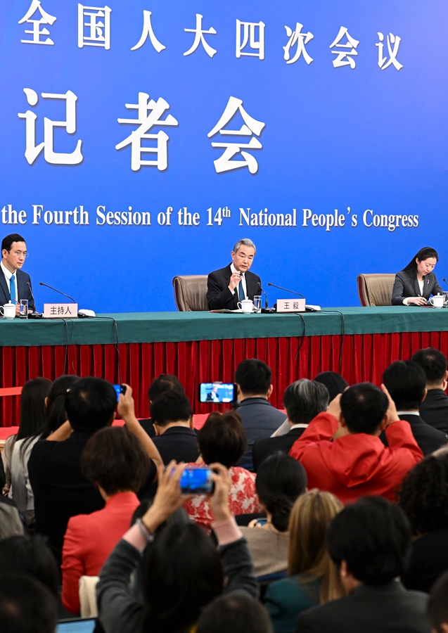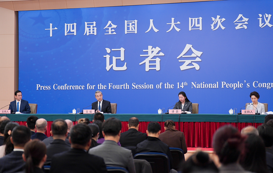 3月8日,十四届全国人大四次会议在北京梅地亚中心新闻发布厅举行记者会。中共中央政治局委员、外交部长王毅就“中国外交政策和对外关系”相关问题回答中外记者提问。
