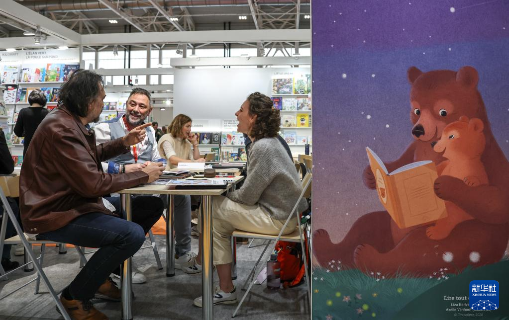 4月13日,在意大利博洛尼亚举行的博洛尼亚国际童书展上,观众欣赏插画作品。