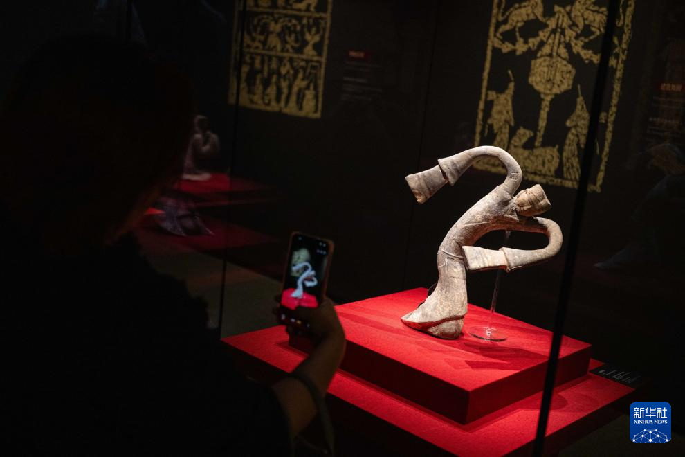 4月17日,参观者在汉代文物精品展上参观。