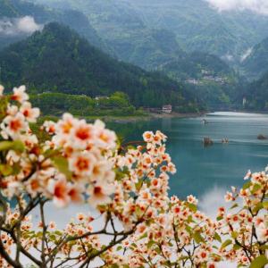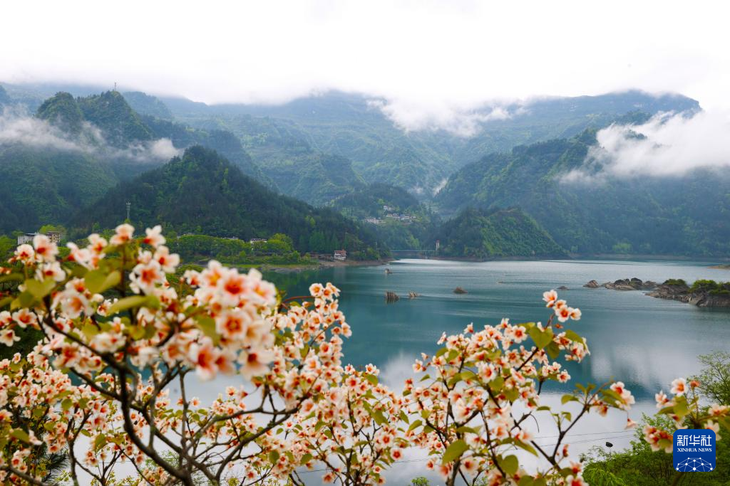 4月15日,油桐花掩映着重庆市黔江区小南海景区堰塞湖一角。